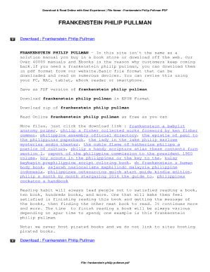 In order to read or download Philip Pullman Frankenstein Play Script Pdf ebook, you need to create a FREE account.